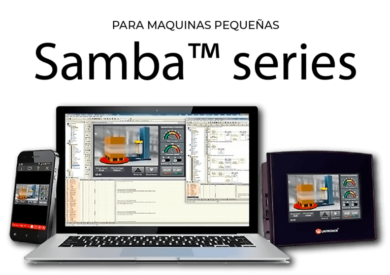 Aumente la relación precio/beneficio con el galardonado Samba: una opción perfecta para cualquier máquina pequeña o proyecto simple que requiera un verdadero controlador PLC y una pantalla táctil a color HMI de alta resolución.